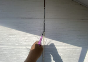タテ目地は打ち替えなので既存のシーリングを撤去していきます。