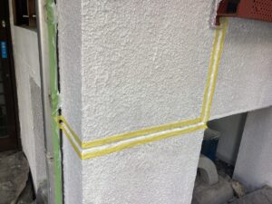 マスキングで養生を行い、刷毛でプライマーを塗布し