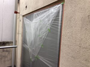 塗らない部分への塗料の飛散を防ぐため、マスキングや