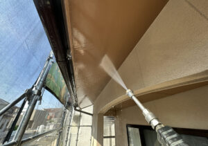 洗浄は、外壁や付帯部など建物全体の汚れ・不良塗膜・コケ等を