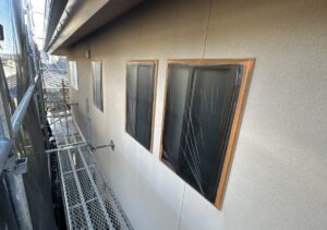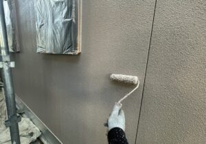 工程が中塗りです。膜厚を付ける事で紫外線や雨風から外壁を守り