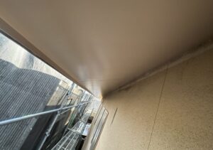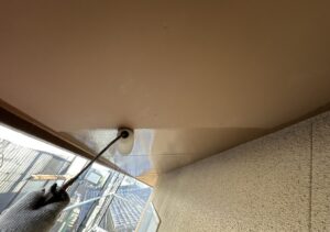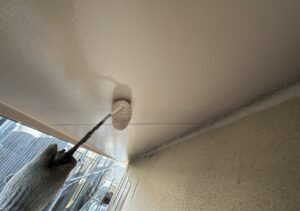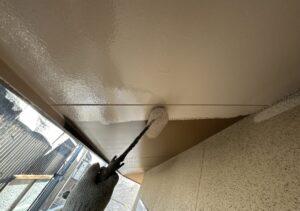 通常は軒天専用塗料を使用しますが、現状油性の塗料で塗られているので、