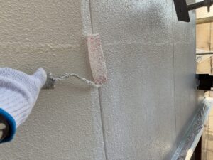 外壁用の微弾性フィラーで、細かなひび割れや凹凸を埋め、
