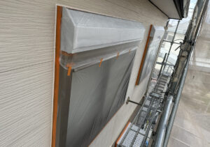 塗らない部分への塗料の飛散を防ぐため、マスキングや
