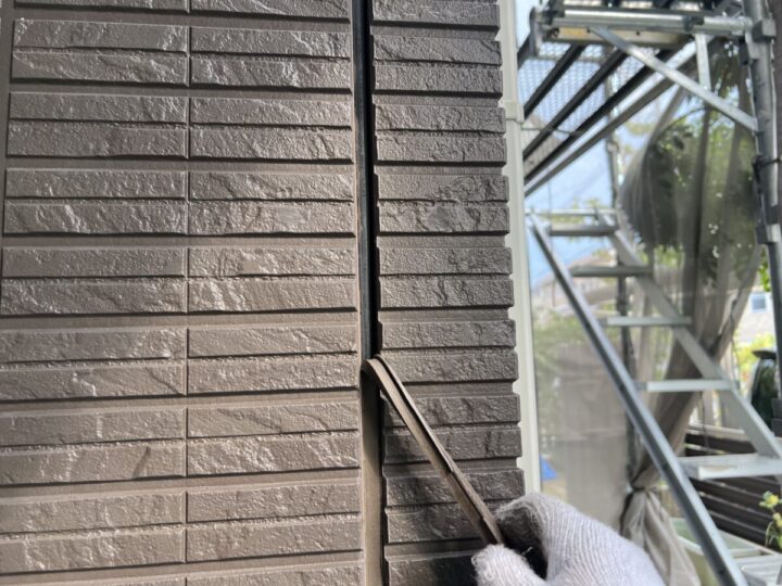 ヘラで均し整えます。外壁目地シーリング 打ち替え 完成✨