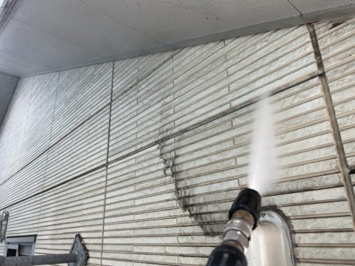 新しい塗料を定着させる為には、付着した汚れ・劣化塗膜・コケ等をしっかり除去することが重要です。外壁目地シーリング 施工前