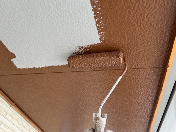 中・上塗りは、無機塗料のセミフロンスーパーマイルドⅡを塗布します。外壁塗装 完成①