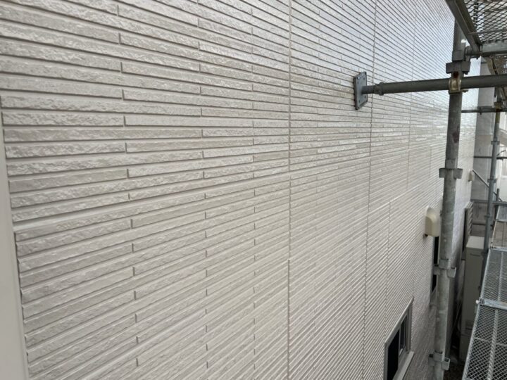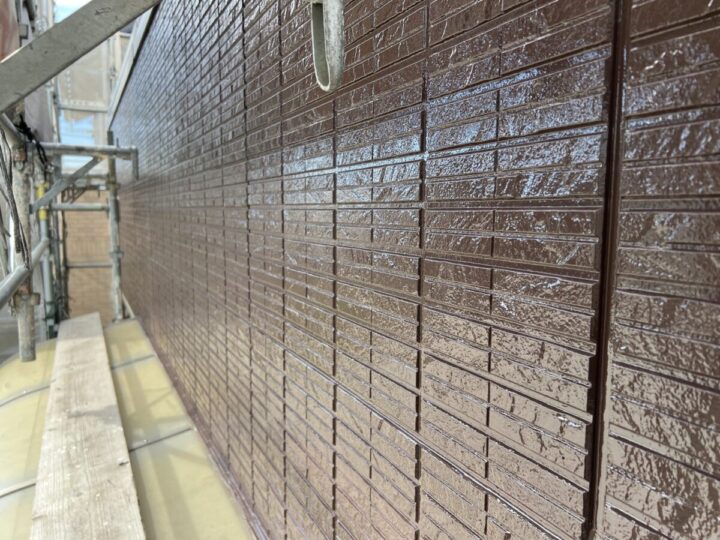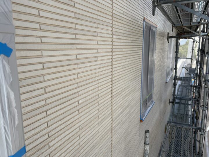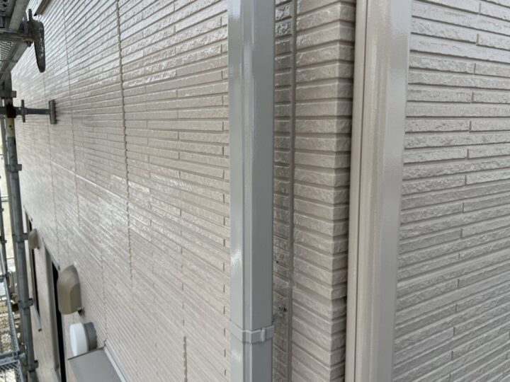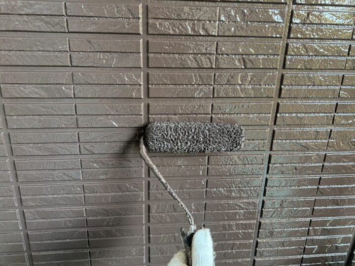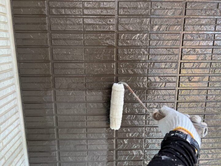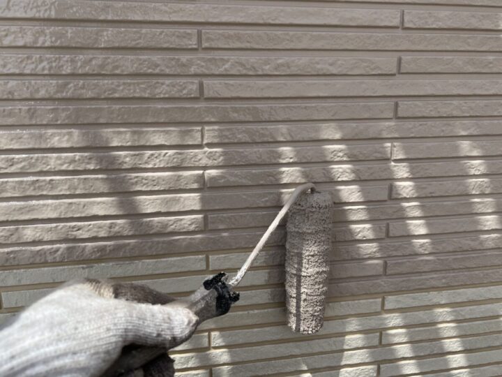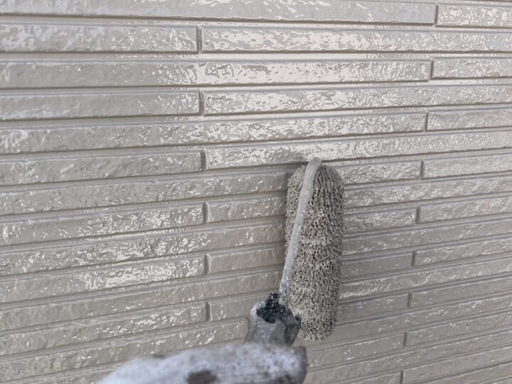 中塗りは塗膜に膜厚を付ける為の工程で、適正な膜厚を付ける事で、塗料の性能を十分発揮させ、上塗りを綺麗に仕上げることが出来ます。外壁中塗り②