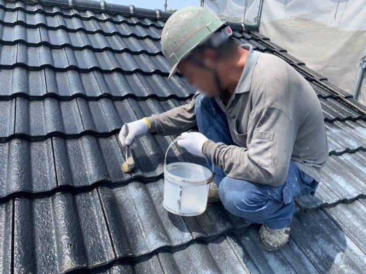 KFマイルドシーラーⅡを使用ししっかりと塗布していきます。屋根下塗り後