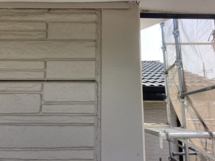 ひび割れ・断裂が生じています。外壁目地シーリング打ち替え①