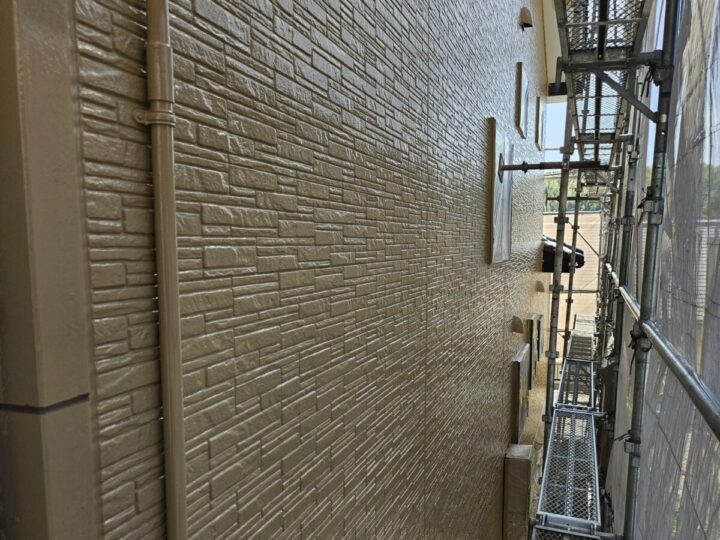 中・上塗りの2回の塗り重ねをする事で耐久性が高くムラの無い均一な塗膜が完成します。外壁塗装 完成✨