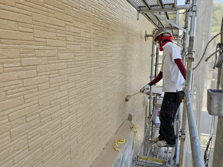 KFマイルドシーラーⅡを塗布し上から塗る塗料の密着を高めます。外壁下塗り後