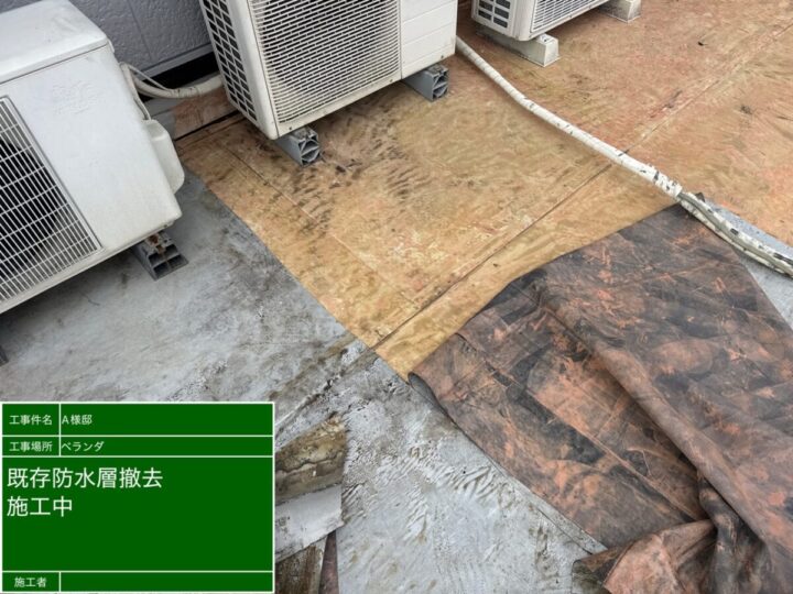 既存防水シートの撤去は、新しい防水層を施工する前に必ず行う重要な作業です。