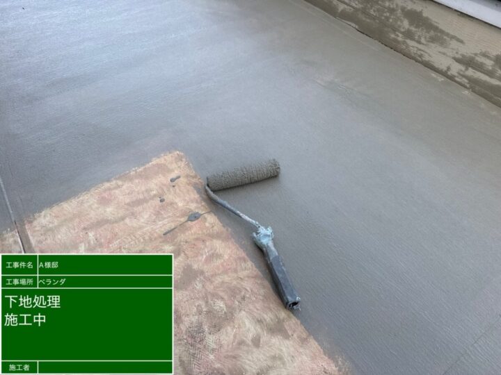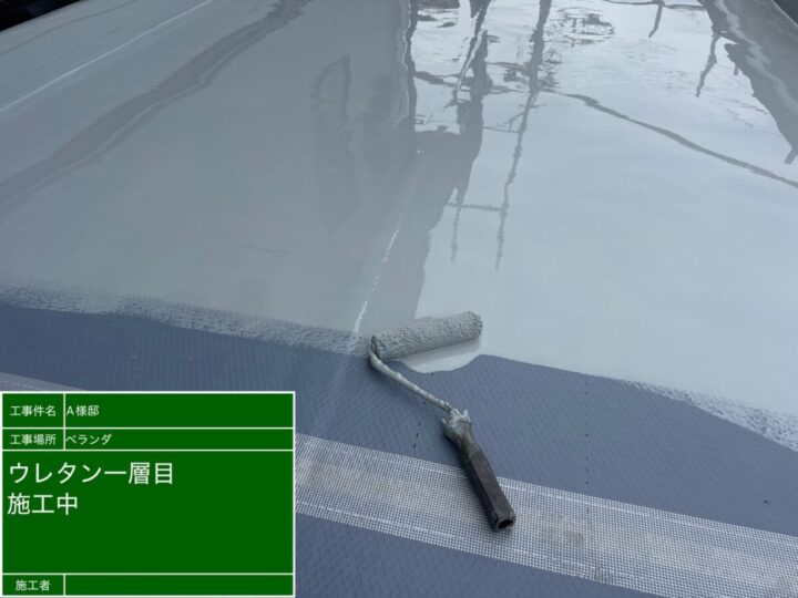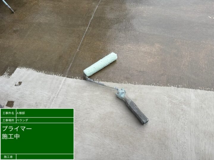 下地と防水材の密着性を高めるために、プライマー(接着剤の役割を持つ塗料)を塗布します。この層により、防水材が下地にしっかり定着し、剥がれや浮きの防止につながります。