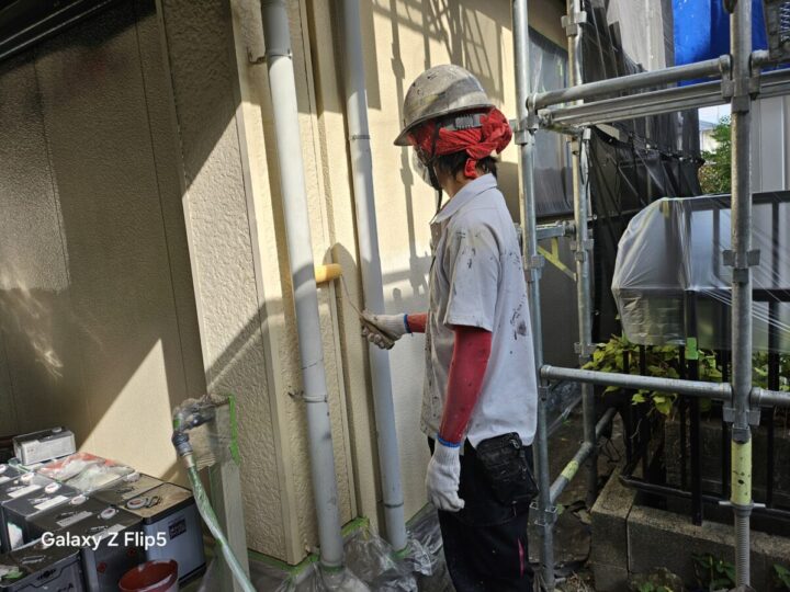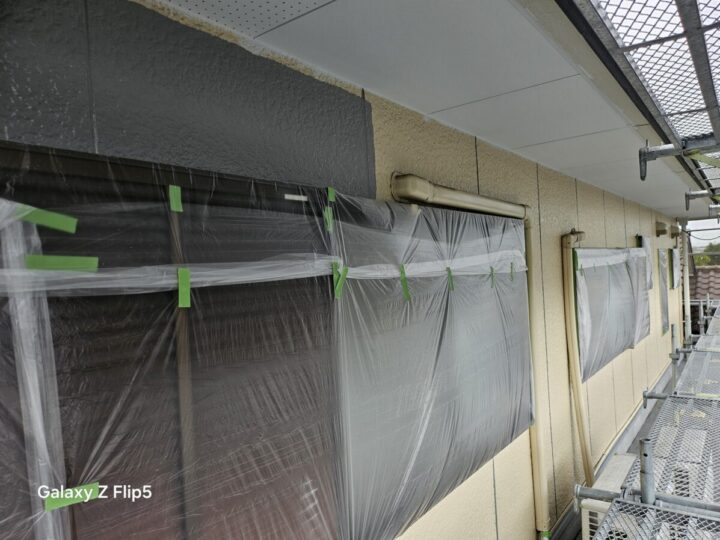養生とは、外壁塗装の作業中に塗料が付着してはいけない部分を保護するための大切な工程です。窓や玄関ドア、配管、植木などをビニールやテープで丁寧に覆い、塗料の飛散や汚れを防ぎます。養生をしっかり行うことで、仕上がりの美しさが保たれるだけでなく、施工後の清掃負担を減らし、周囲への配慮にもつながります。正確で丁寧な養生は、品質の高い外壁塗装の基本となる作業です。