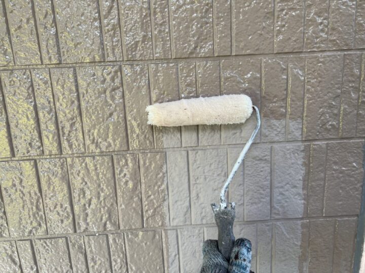 外壁塗装の上塗りは、塗装工程の最後に行う仕上げの塗布作業で、色ムラをなくし、美しい外観と高い耐久性を実現します。上塗りは中塗りと同じ塗料を使い、均一に塗ることで塗膜の厚みを整え、外壁をしっかり保護します。丁寧な上塗りが、長期間美しい状態を保つために重要です。