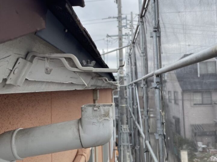 これまでは表面の保護機能が失われ、腐食が進みやすい状態にありましたが、既存の樋と金具をすべて撤去し、新しい部材へと一新しております。取り付けの際は、雨水がスムーズに集水器へ流れるよう、ミリ単位で正確な勾配調整を行いました。