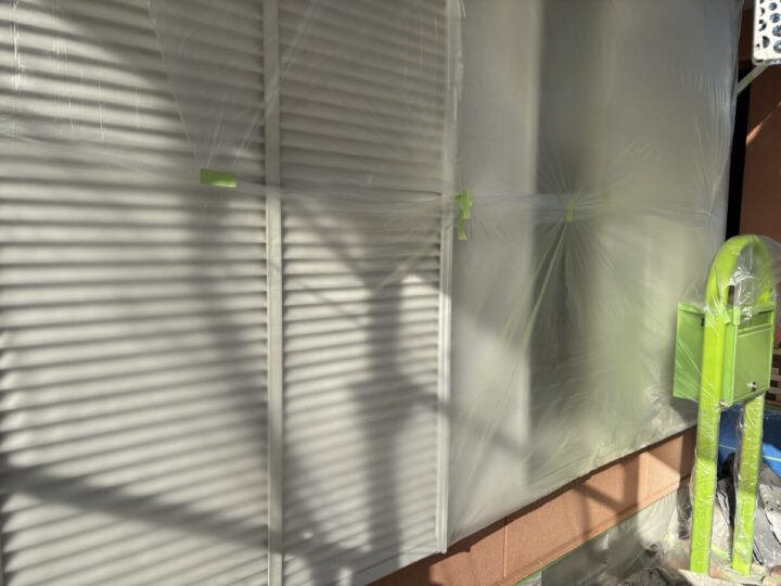 養生は、塗料が付いてはいけない部分を保護するために窓やドア、設備機器などをビニールやテープで覆う作業のことです。塗料の飛び散りやはみ出しを防ぎ、仕上がりをきれいにするために欠かせません。丁寧な養生が行われているほど、塗装の品質や見た目が良くなります。