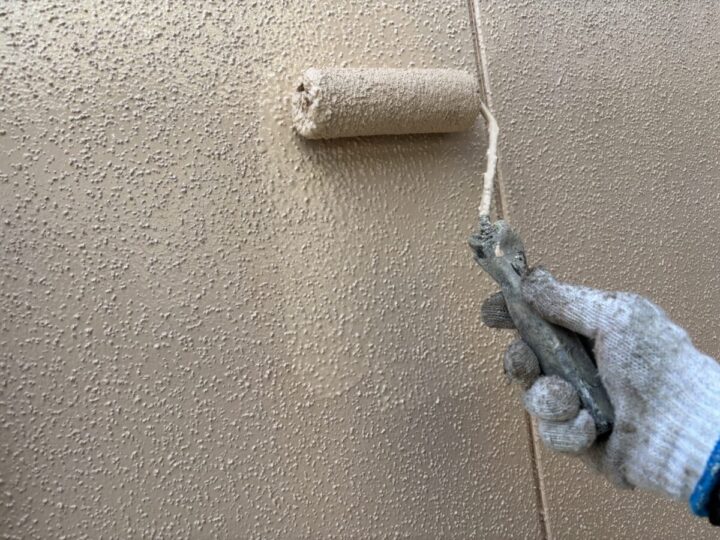 外壁の中塗り同様、下塗りの後に行う工程で、塗膜の厚みを確保し、塗装の耐久性や仕上がりの美しさを高める役割があります。中塗りは、上塗りと同じ塗料を使うことが多く、均一に塗布することで色ムラや塗り残しを防ぎます。丁寧に塗ることで、長持ちする外壁塗装に繋がります。