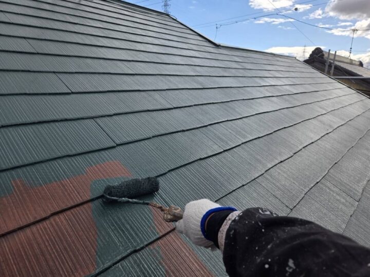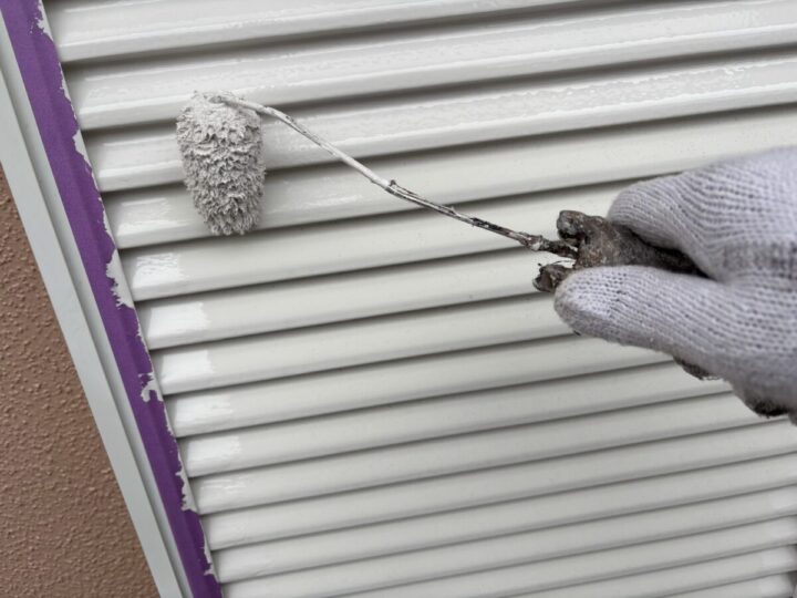 外壁の上塗り同様、塗装工程の最後に行う仕上げの塗布作業で、色ムラをなくし、美しい外観と高い耐久性を実現します。上塗りは中塗りと同じ塗料を使い、均一に塗ることで塗膜の厚みを整え、外壁をしっかり保護します。丁寧な上塗りが、長期間美しい状態を保つために重要です。