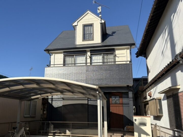 屋根と1階外壁をダークグレーに塗り替えられ、全体が引き締まりスタイリッシュな