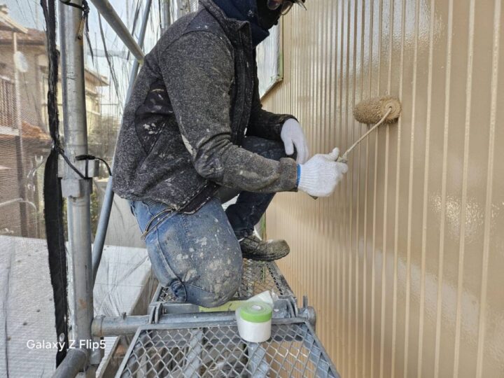上塗りは、建物全体の意匠性を完成させるとともに、外部の湿気や雨水から構造体を守る最終ラインです。適切な乾燥時間を経て塗り重ねられた2層の塗膜は、ひび割れ追従性の高い柔軟な保護層となり、住まいの美観と防水性能を長期間にわたって維持します。