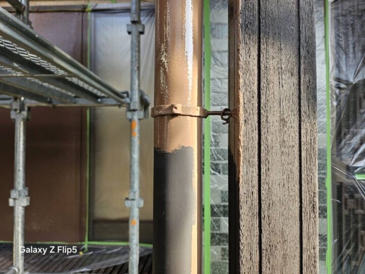 下地処理を施した表面に、上塗りと同じ塗料を1層目として塗布します。雨樋の丸みや裏側まで均一に塗り込み、紫外線や雨風に強い丈夫な塗膜の土台を作ります。
