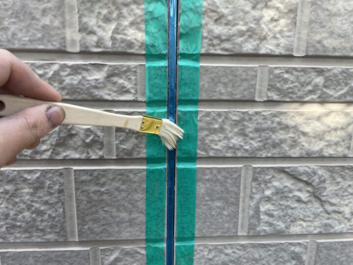 両側面をマスキングテープで養生し接着を促す為、プライマーを塗布します。