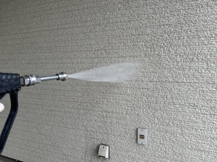 高圧洗浄を行い、長年の汚れを洗い流していきます。汚れが付着したまま塗装をすると早期に剥がれる可能性があります。