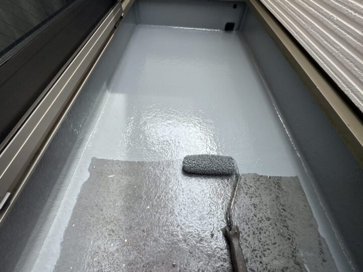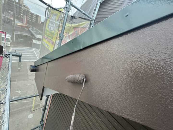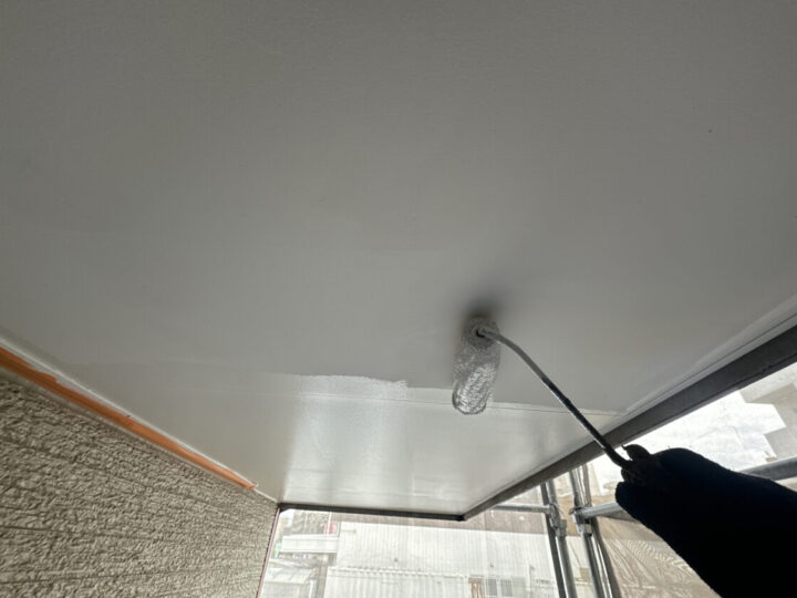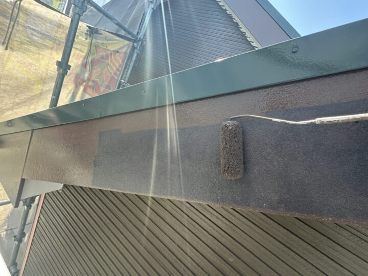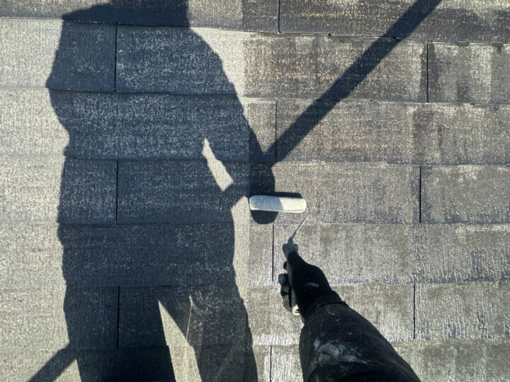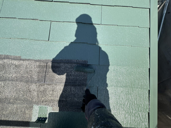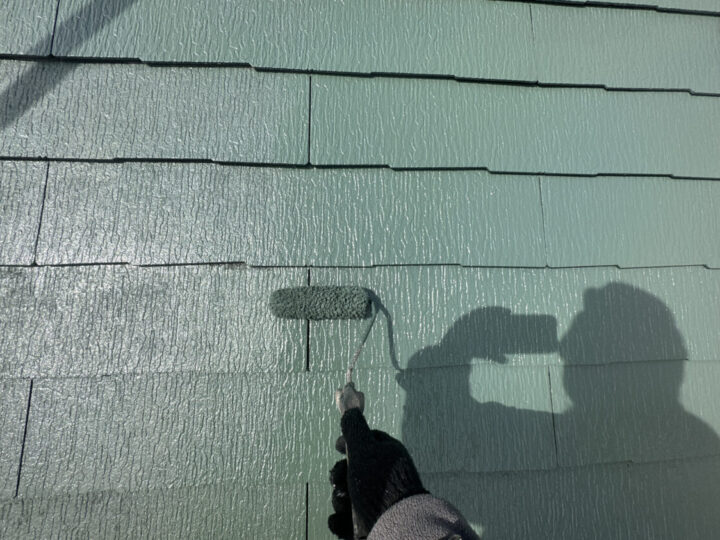 屋根塗装の上塗りは仕上げの工程です。セミフロンスーパーマイルドⅡを使用し、