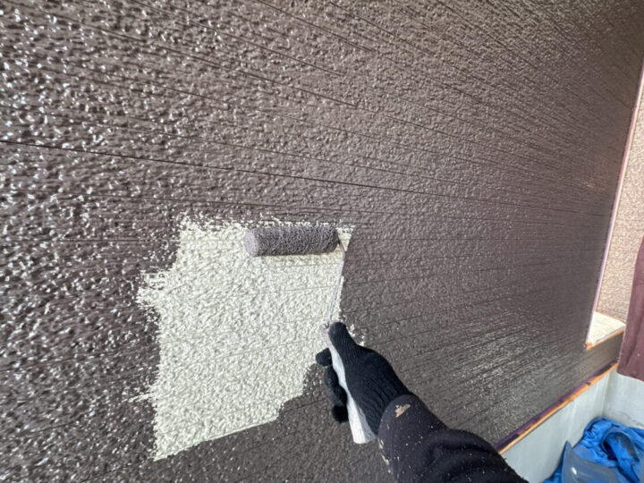 外壁塗装の下塗りはKFマイルドシーラーⅡを使用し、上塗り材の密着を良くしていきます。