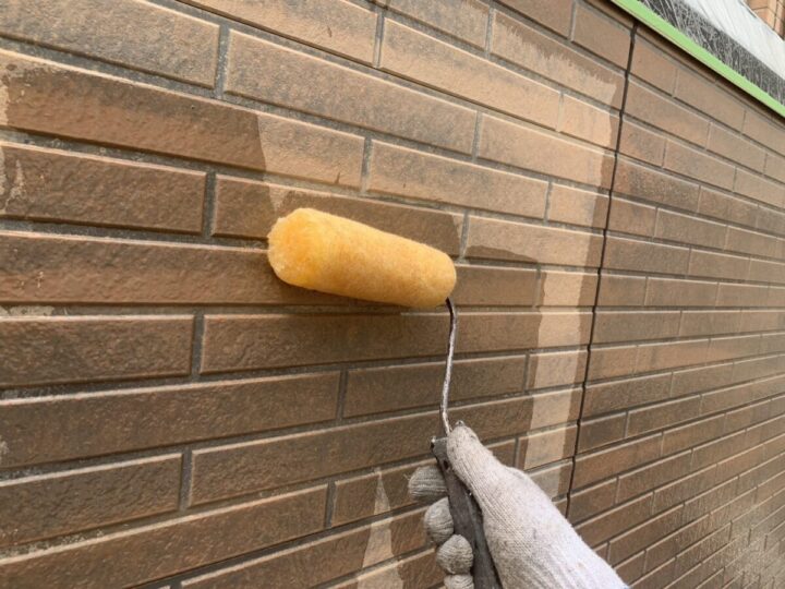外壁の下塗り同様、塗装工程の初めに行う重要な作業で、上塗り塗料の密着性を高め、塗装面を均一に整える役割があります。下塗り剤を塗布することで、外壁の吸い込みを抑え、塗料のムラや剥がれを防止します。適切な下塗りは、仕上がりの美しさと耐久性を大きく左右するため、丁寧に行うことが大切です。下塗り材はKFマイルドシーラーⅡを使用しています。