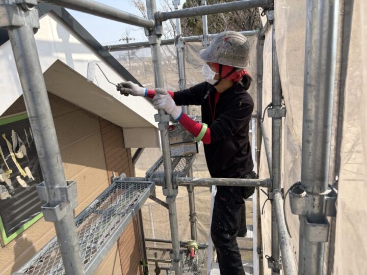 外壁の中塗り同様、下塗りの後に行う工程で、塗膜の厚みを確保し、塗装の耐久性や仕上がりの美しさを高める役割があります。中塗りは、上塗りと同じ塗料を使うことが多く、均一に塗布することで色ムラや塗り残しを防ぎます。丁寧に塗ることで、長持ちする外壁塗装に繋がります。