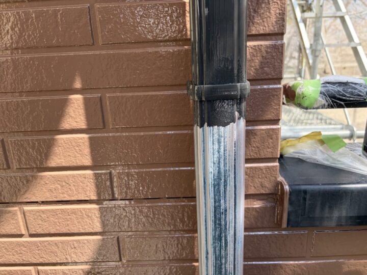 下地処理を施した表面に、上塗りと同じ塗料を1層目として塗布します。雨樋の丸みや裏側まで均一に塗り込み、紫外線や雨風に強い丈夫な塗膜の土台を作ります。